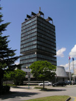 Keďže po dlhom čakaní ma zmáha hlad, nezaťažujem sa veľmi prehliadkou centra, ale hľadám nejakú reštiku alebo bufet. Po syrovom burgri naberám kurz späť k servisu, no ešte som sa stavil v krčme na hlavnej mestskej križovatke, nechvalne známej všetkým vodičom, používajúcim severný ťah západ – východ. Považská Bystrica leží v zúženine údolia Váhu, čo robí výstavbu diaľnice v týchto miestach problematickou. D1-ka od Bratislavy končí za Sverepcom a po Považskú sa doprava zahusťuje. Rovnako je to i od severu, od Žiliny. Spomínaná križovatka preto patrí medzi najvyťaženejšie na Slovensku. Ak zahapruje svetelná signalizácia, majú tu na krku dopravný kolaps. V pohostinstve na rohu „starej“ hlavnej č.61 (Bratislava – Žilina) a orlovskej lokálky trávim pomerne dosť času, vyše hodinu. Medzitým som stiahol dve veľké kofoly (schválne nealko, naspäť plánujem ísť bikom) a popritom sledoval dianie naokolo. Tešilo ma, že meteorológovia sa v prognóze na dnes netrafili – namiesto oblačnej oblohy je prevažne jasno, takmer bez mráčika. Pred návratom do servisu som zabehol na stanicu, zistiť, kedy idú najbližšie vlaky. Pre prípad, že predsa len by môj bicykel nebol do tej druhej hotový. Do cykloservisu Belo sa vraciam okolo 12:20 hodín, potrebujem vedieť, či s „generálkou“ nastal nejaký progres. Našťastie nastal. Už dorazil Marcel Bielik, ktorý sa vzápätí púšťa do revízie môjho biku. Prehodili sme pár slov, či už o cyklistike alebo len tak všeobecne, na záver ma ubezpečil, že generálka by mala byť do druhej hodiny hotová. To by bolo v pohode. Síce by som vyrazil vcelku neskoro, no som pripravený aj na eventuálnu nočnú jazdu. Tesne pred jednou sa opäť vydávam do centra mesta, tentoraz s foťákom. Škoda by bola odísť bez fotografickej dokumentácie. Treba povedať, že Považská Bystrica nepatrí medzi najokúzľujúcejšie mestá na Slovensku. Prevažná časť leží na ľavom brehu rieky Váh. Väčšinu zástavby tvoria panelové sídliská z čias minulého režimu, po okraji je roztrúsených niekoľko predtým samostatných dedín, ktoré postupne s Považskou splynuli. Centrum mesta sa taktiež nesie v duchu strohej architektúry obdobia socializmu, dominantami sú dve väčšie stavby – budova riaditeľstva bývalých závodov ZVL a budova štátnej správy. Azda najstaršou je budova Považskej knižnice na náprotivnej strane hlavnej cesty, ktorá je v ostrom kontraste s okolitými panelákmi.