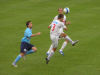 Priebeh zápasu i predvedená hra zo strany oboch tímov v úvode nebola dôkazom toho, že proti sebe hrajú mužstvá z opačných koncov tabuľky. Nitra si síce vytvorila väčší tlak, ale hostia spočiatku stačili držať tempo. Futbal to veru pohľadný nebol, no to som ani nečakal. Úvodnými šancami sa prezentovali Karlík a Depetris. V 20.minúte Trenčan Čögley prekopol vlastnú bránu a po následnom rohovom kope Kostolániho skóroval Semeník na 1:0. Po dvoch minútach sa v šanci ocitol Sloboda, no napriek dostatočnému času i priestoru Rožníkovu bránu prekopol. V 26.minúte vybojoval loptu Ďatko, posunul Kostolánimu, ktorého presná prihrávka našla pred päťkou Grajciara – 2:0. Nitra sa dostala na koňa, Trenčania strácali dych. V 34.minúte Semeník po Gruberovej prihrávke v brejku zlyhal na Rožníkovi, ten potom vychytal v čistej šanci i Kostolániho. Na druhej strane sa trenčiansky gólman dopustil viacerých kiksov, najmä z jeho výkopov som bol zhrozený. Aj sa čudujem prečo nechytal Volešák, ktorý v predošlých zápasoch podával sympatické výkony (asi preto smeruje do Viktórie Žižkov).