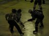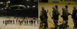 K zimnému štadiónu prichádzame trocha neskôr ako obvykle, lístky kupujeme až na mieste. Problém nebol, pomerne krátke rady veštili nízku úroveň zápasu. Miesto sme zaujali na B-tribúne pri sektore hostí (mimochodom fanklub Steelers napriek špekuláciám nedorazil), no krátko pred zahájením stretnutia po nás došiel jeden z nitrianskych fanúšikov, že sa máme pridať medzi nich. Nuž nenamietal som. Síce bolo máličko nepríjemné byť obklopený fanúšikmi súpera, no rozhodne nebolo cítiť nepriateľskú atmosféru. Skôr naopak – najprv mi vnútili butilku s nejakým raketovým palivom, no pozvanie na pivo som už rezolútne odmietol. Prišli sme kvôli hokeju, nie?