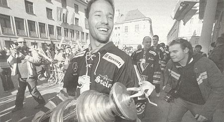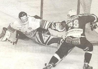 Miroslav Javín ofenzívny obranca oceliarov bol najproduktívnejším bekom ligy na konci zákl.časti |