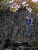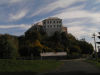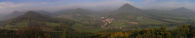 Zostupom sa vraciam na modrú trasu, opúšťam les a od križovatky pri osade Kocourov kráčam po asfaltke, ktorá ma krátko po štvrť na jedenásť privádza do Milešova. V strede obce, ktorej dominuje renesančný zámok (či skôr kaštieľ) vystavaný na čadičovej skalke, sa chvíľu dívam do mapy a zároveň s rešpektom hľadím na príkre svahy Milešovky, zdanlivo až nezdolateľne pôsobiace. Na vrchol vedie červená trasa, križujúca celé České stredohorie od Libochovíc po Ústí nad Labem, stúpanie začína už prakticky dole v Milešove. Mierne vystupujúca asfaltka ma privádza k zámku, ďalej kráčam kamenitou lesnou cestou, predbieham dvoch spomalenejších turistov a napokon prichádza výšľap. Chodník, miestami zarezaný do fonolitových skaliek, sa vinie južným svahom Milešovky na spôsob serpentín, inak sa ani nedá. I keď kopec je strmý, tempo nijak nekrátim. Cestou nikoho nestretám, až od rázcestia s modrou je väčšia koncentrácia turistov (či dokonca cyklistov), a to ako stúpajúcich, tak zostupujúcich z vrcholu. Ja sa na temene Milešovky, nemecky zvanej Donnersberg, s 837 m.n.m. najvyššej hory v Stredohorí, ocitám o štvrť na dvanásť. Vrchol tejto hory z väčšej časti zaberá terénna meteorologická stanica Ústavu fyziky atmosféry AVČR s rozhľadňou, ktorá je prístupná pre verejnosť. Inak verejnosti je tu dnes neúrekom. Ako som sa kdesi dočítal, Milešovka je najveternejším miestom v ČR s bezvetrím len niekoľko dní do roka. O pravdivosti tejto štatistiky sa môžem presvedčiť hneď na mieste, počas obedňajšej pauzy som vďaka nepríjemnému studenému vetru poriadne vychladol. Inak zase chleba s maďarskou klobáskou a pohľad do mapy.