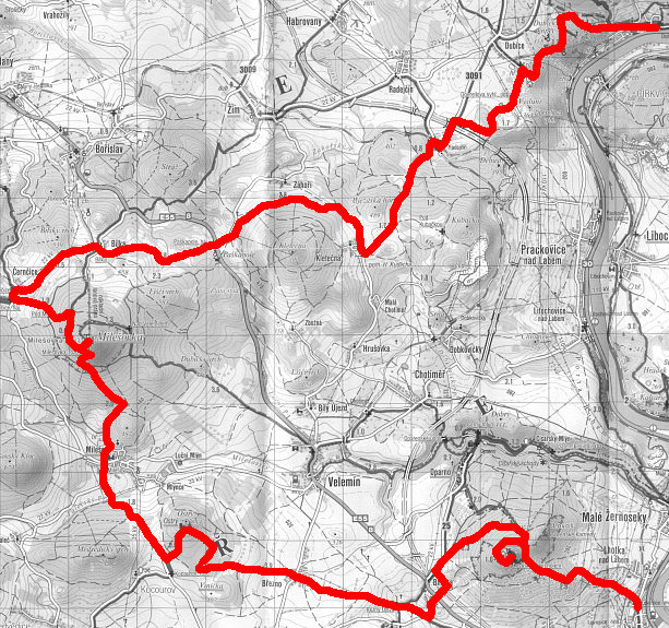 Pokračujúc zelenou trasu ústim z obce a kráčam okrajom lúky, kde v dôsledku tieňa vrhaného blízkym lesíkom je tráva ešte mokrá. Na jednej z medzí nachádzam celkom zaujímavú bazaltovú trosku a horninu zvanú porcelanit – íl alebo slieň masívnej až struskovitej štruktúry, vypálený na kontakte s lávovým prúdom. Neďaleko sa ocitám na sedle Paškapole (450 n.n.m.), kde zelená turistická trasa križuje cestu I.triedy č.8 z Prahy do Teplíc. Za touto cestou pokračujem málo frekventovanou lokálkou ďalej na východ, už po niekoľkých desiatkach metroch sa však stáčam do lesa a severným upätím vrchu Kletečná (706 m.n.m.) kráčam lesnou cestou do rovnomennej obce. Pri kríži na križovatke si tesne po jednej dávam niekoľkominútovú pauzu, posilňujem sa tatrankou a súčasne sa dívam do mapy a hľadám najvhodnejšiu trasu zostupu do údolia Labe a k železnici. V postupe pokračujem po asfaltke, mierne zostupujúcej k železničnej stanici Radejčice na trati č.097 (Lovosice – Řetenice), kde sa z turistického hríbika dozvedám, že žltá trasa, ktorú mám zhodou okolností v pláne využiť, je kvôli výstavbe diaľnice až po Dubice uzatvorená. Náhradným riešením je teda po túto obec postupovať po autoceste, z tej však tesne za staveniskom diaľnice schádzam a okolo kamenných a hlinených násypov budúcej autostrády prechádzam neoraným poľom na okraj lesa. Opäť mám možnosť kochať sa výhľadom na severný okraj Stredohoria, ako aj hradbu vzdialenejších Krušných hôr na pomedzí Čiech a Nemecka. Od nevysokého telekomunikačného vysielača, ktorý tvorcovia mojej turistickej mapy akosi pozabudli zobraziť, kráčam spevnenou cestou mimo značenej trasy, až sa ocitám opačnej strane lesa na dohľad od Dubíc. Chodidlá vo vibramkách už mám dosť otlačené, navyše znova začínam cítiť bedrový kĺb, ktorý som si presilil pri predchádzajúcej túre. Snáď sa do pochodu v Slovenskom raji dám do poriadku.