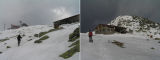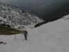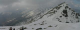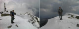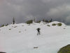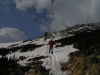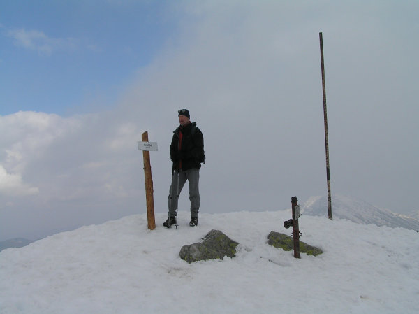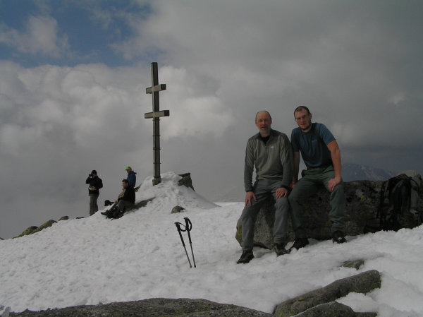 Skladáme sa pri vrcholovej kóte, čosi si zajedáme a popíjame horúci čaj. Okrem nás sa na vrchole nachádzajú iba maďarskí turisti, jedni zakrátko zostupujú na lyžiach k „štefáničke“, ďalší posedávajú pod dvojkrížom a k odchodu sa zberajú spolu s nami. Počasie sa k nám zachovalo férovo, práve v čase nášho výstupu na vrchol nám nastavuje svoju prívetivejšiu tvár. Typickú atmosféru jarnej vysokohorskej túry popri kontraste chladne pôsobiacej snehovej pokrývky a hrejivého slnka, nepodobného tomu nízkemu zimnému, aj príjemne „teplý“ vzduch a bezvetrie, narušované azda iba slabými poryvmi osviežujúceho vánku. Do starých koľají sa situácia vracia s našim odchodom.