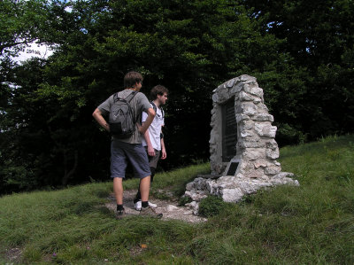 Hoci sa na tých bývalých atlétov alebo telocvikárov nehrabeme, i tak kráčame pomerne rezkým tempom. Cesta sa všemožne kľukatí lesom, kus dokonca výrazne klesá, nato však opäť naberá pomerne prudké stúpanie, aké sa nevidí na každej túre. Naposledy som obdobný strmák zažil počas výstupu na Sninský kameň. Serpentínami stúpajúci chodník nás privádza na temeno jedného z hrebienkov tvoriacich masív Rokoša. Medzi rozorvanými dolomitovými skalkami nakrátko odpočívame (niektorí aj poležiačky). Vrchol už máme na dohľad. Miernym zostupom z hrebeňa sa dostávame na sedlo Rokoš (955 m.n.m.), načo nám na vrchol ostáva už iba záverečný, asi 10-minútový úsek. Na samotný vrchol (1010 m.n.m.) prichádzame tesne pred jedenástou, pauzu na najvyššom bode masívu Rokoša už teda môžeme označiť za obedňajšiu. Okrem nás hore pauzuje iba párik idúci dvojdňový pochod na Vápeč, dôchodcov niet. Po zápise do vrcholovej knihy sa ešte zastavujeme na o čosi nižšie ležiacej vyhliadke, nachádzajúcej sa na rozhraní lesa a lúk, pokrývajúcich západné stráne Rokoša. Od pamätníka miestnych rodákov Ľ.Štúra a A.Dubčeka máme možnosť sledovať bezprostredne vôkol nás ležiace kopce južnej časti Strážovských vrchov, Uhrovský hrad a pamätník SNP na Jankovom vŕšku, či vzdialenejšiu Bánovskú kotlinu alebo Tríbeč.